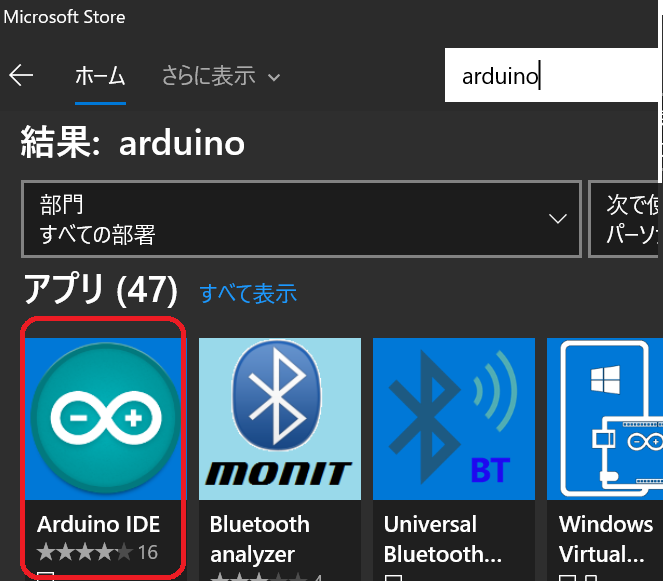 Windows10の場合、Arduino IDEアプリ(Windowsアプリ版)を利用するのが便利です。