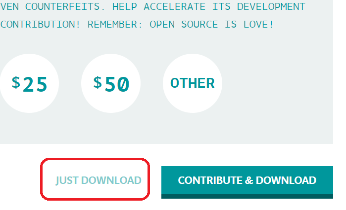 ③ [JUST DOWNLOAD]をクリックします。すると、ZIPファイル(arduino-1.x.x-macosx.zip)をダウンロードできます。